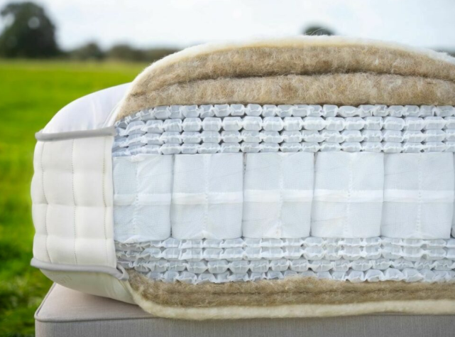 The mattress is layered with blended British wool and viscose, alongside British wool, hemp and flax, and cotton, hemp and flax, creating a naturally breathable, moisture-regulating sleep surface. These premium natural materials work together to maintain a perfectly balanced sleep climate while offering gentle cushioning and outstanding durability.