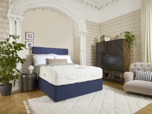 Brand new to Sleepy Hollow Bedroom Centre from Harrison Spinks this incredibly luxurious and supporting mattress and sprung base. Harrison spinks sprung base for additional support and comfort and the incredible, non-turn extra firm mattress offering all the luxury and support you’d expect from Harrison Spinks without the heavy work of turning it. At the core of the mattress is 2750 innovative Cortec™ Quad 100% recyclable pocket springs, layered with Posturfil pocket springs that adapt to your body’s contours to relieve pressure and provide greater comfort and lumbar support. A blend of all-natural sustainable fillings including British wool, natural cotton and home-grown needled hemp help wick away moisture and regulate your temperature through the night. Finished with 2 rows of side stitching and an in-house woven natural and ChemFRee mattress cover.