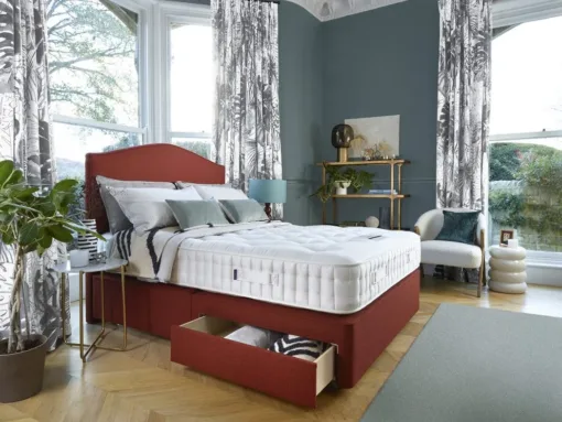 Luxury Firm Edge Sprung base and 2850 pocket spring mattress set. Truly the most luxurious mattress in the Natural Collection. The Luxury Silk 2850 has a combined spring count of 2850 from the pocket springs in the heart of the mattress and mini pocket springs in the pillowtop that help distribute weight evenly, minimising pressure on the body and resulting in an undisturbed night’s sleep. Cashmere and silk elevate the levels of plush comfort in this truly sumptuous mattress. Relyon’s expert bedmakers have designed the Luxury Silk 2850 with your luxury in mind. Spectacular layers of cashmere and silk fibres are blended to create a durable insulation layer, that also helps to support the sleeper. Each deep layer of fillings is applied by hand to ensure even distribution and durability. These layers are completely natural, breathable and are even anti dustmite. These luxury fillings complement the pocket springs – of which this mattress contains a whopping 2,850! The pocket spring one of the best systems to help with posture and provide comfort to the sleeper. Not only are there pocket springs in the core of the mattress, but there are also mini pocket springs within the pillow-top layer too! These springs make for a luscious feel that is slightly firmer than a traditional pillow-top but remains a luxurious, comfortable mattress to sink into at the end of the day.